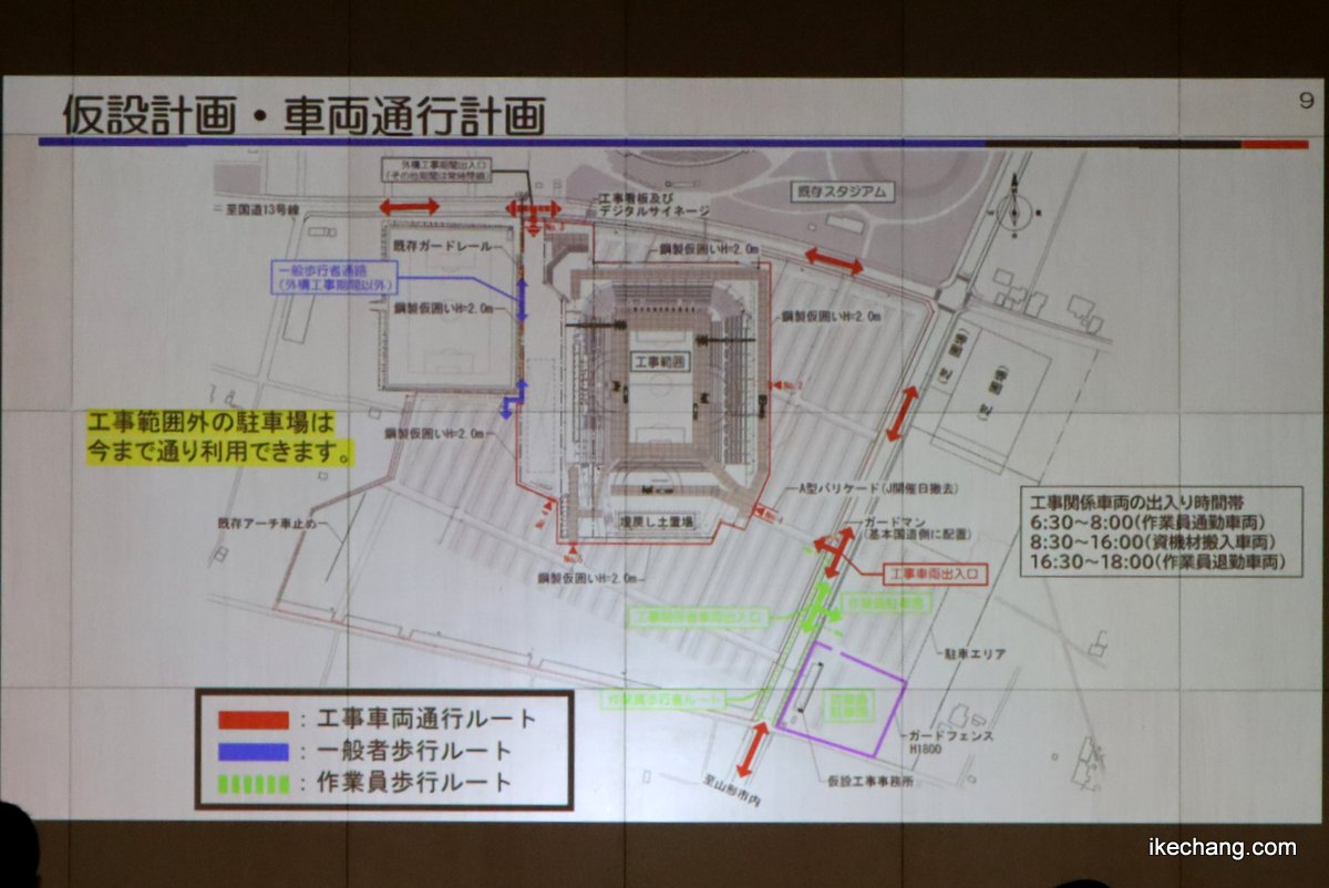 [モンテ]駐車場のなかにスタジアムができて危ないのではないかという件について、スタジアムの敷地4.9万平方メートルの周りに柵を設けるので安全だ。