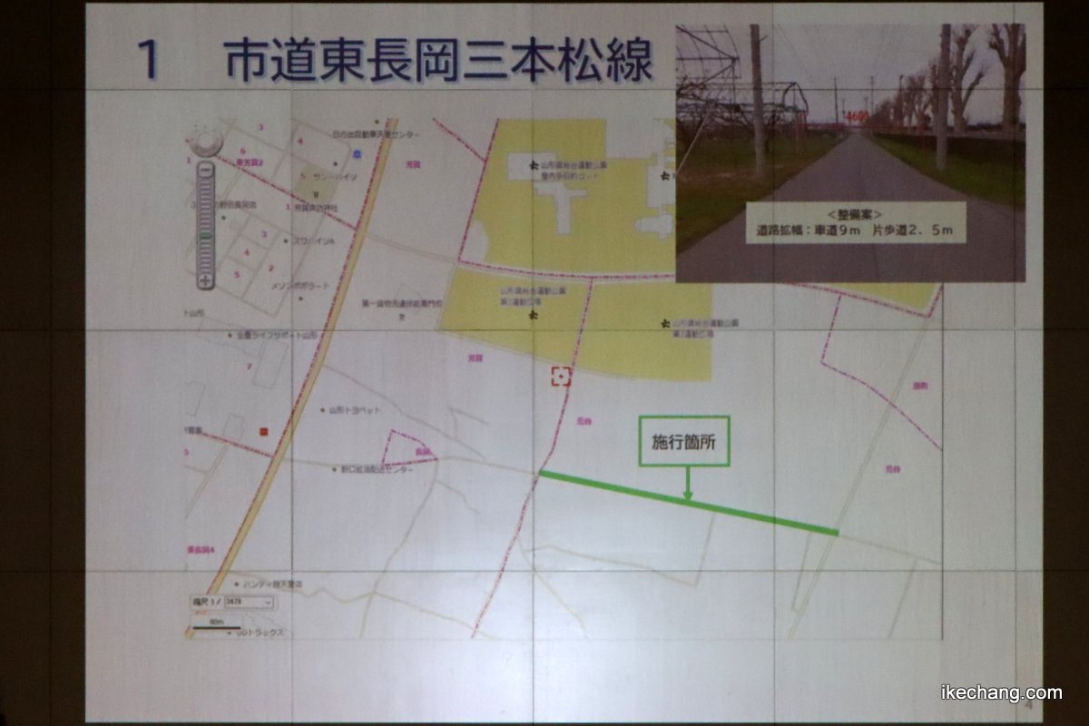 [14/24] 新スタジアムの南側道路「市道 東長岡三本松線」は特設駐車場に接する区間を拡幅