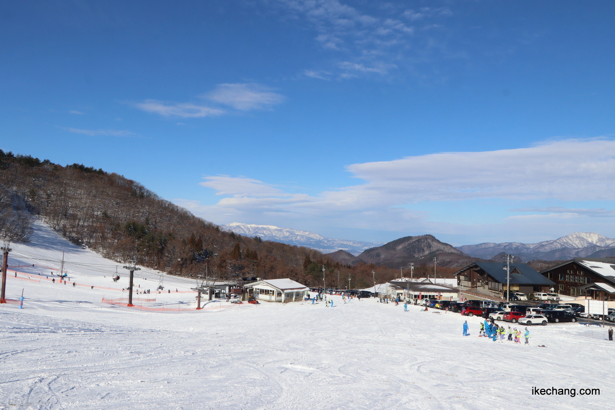 リフトを下りて初心者コースに向かうと、正面に面白山が見えます
