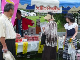 宮城県多賀城市の「第21回多賀城跡あやめまつり」会場で、天童市観光物産協会と天童市が天童市物産フェアを開催しました。旬を迎えているサクランボを中心に、将棋駒の形をしたもろこしや漬物など、特産品の販売を通して天童市の観光と物産を広くPRしました。