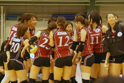 第4セットはパイオニアレッドウィングスがなんとか競り勝ちましたが、第5セットは強烈なアタックが次々に決まり、セットカウント3対2でタイ・ナショナルチームの勝利で終わりました。仏教国らしく、試合終了後は合掌しながらお辞儀を繰り返していました。 |