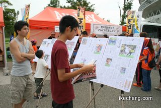 夏休み期間に入ったこともあってか、天地人グッズが当たるガラポンがあったり、「かねたん」「けんけんず」など天地人にゆかりのあるキャラクターたちが大集合したりと、スタジアム周辺では午後1時過ぎからさまざまなイベントが催され、まさにお祭り状態! 午後4時の入場開始まで、ずうっ〜と楽しみながら時間を過ごすことができました。