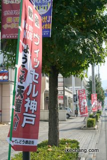 今回のノボリ旗は、国道13号をはさんでNDソフトスタジアム山形の南口に向かう道路、およそ200メートルの区間に設置されています。ノボリ旗は、モンテディオ山形の選手やマスコットキャラクター「モンテス」「ディーオ」の絵柄に思い思いのメッセージを入れてつくることができるサービスを利用したもので、縦180センチ、横45センチの大きさがあります。わたしも「ディーオ」の絵柄で注文中で、できあがりを待っているところです(笑) |