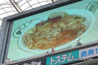 試合前には、電光掲示板でオススメの出店の商品を紹介する番組を行っていました。モンテディオ山形でも音声のみで食べ物関係の紹介はしていますが、写真と一緒にPRするともっといいよなぁ〜、とコレを見て思いました。モンテディオ山形のホームゲームでは再入場OK!なので、PR効果はバツグンだと思います。