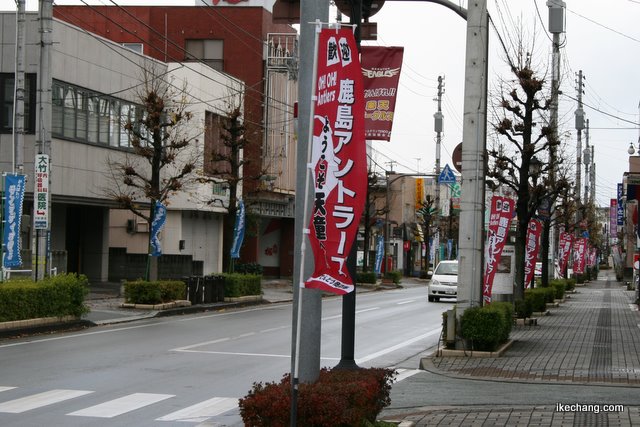 ![]() JR天童駅から天童温泉へ伸びる道路では、北側に鹿島アントラーズを歓迎する赤い旗がずらっと飾られました |