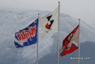 ![]() 雪山をバックにはためく両チームのフラッグ |
