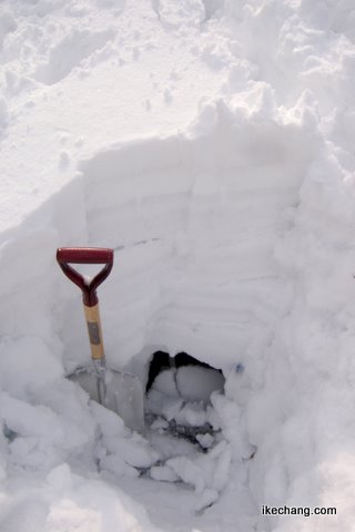 まさに、お宝発掘をしているような心境です。「どのくらい雪があるんだろう?」とまっすぐ掘り進めてみたところ、胸まですっぽり埋まってしまうほどの積雪がありました。