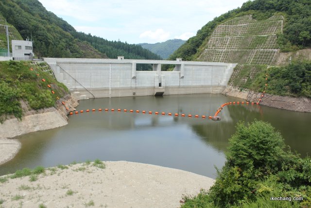 留山川ダムのダム湖「天留湖(てんりゅうこ)」にはまだ十分に水がたまっています