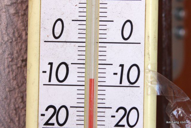 自宅の外に置いてある温度計は、午前8時でもマイナス8度以下に!