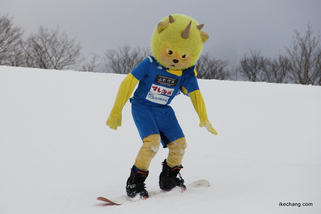 「天童高原スノーパークフェスタ」の2日目、サッカーJ2・モンテディオ山形のマスコット「ディーオ」が天童高原スキー場を訪れて、Jリーグマスコット総選挙への投票を呼び掛けました。以下、Twitter(@ikechang_com)に投稿した写真をまとめました。