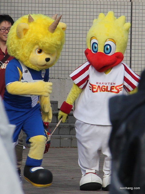 サッカーJ2・モンテディオ山形の「ディーオ」とプロ野球・東北楽天の「スティッチ」