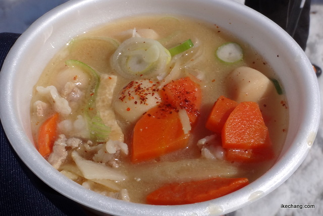 ホーム戦でお店を出している「1年2組」から豚汁の差し入れがありました