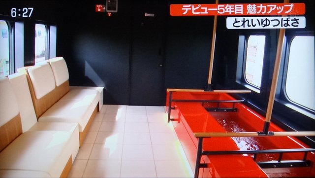 足湯を乗せたリゾート列車として知られる「とれいゆ つばさ」がリニューアルされ、来月6日から運行が再開されます。きょうその内部がマスコミに公開されました。