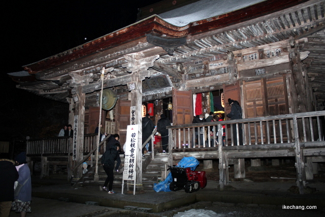 最上三十三観音 第一番札所、良縁成就/心願成就で知られる山形県天童市の鈴立山若松寺(れいりゅうざん じゃくしょうじ)では、1月3日まで元朝特別祈祷が行われてます。雪降りだった昨年とは異なり、今年はまったく雪がないため、早い人だと午後11時前から元朝参りの先着100名プレゼントを待っていました。