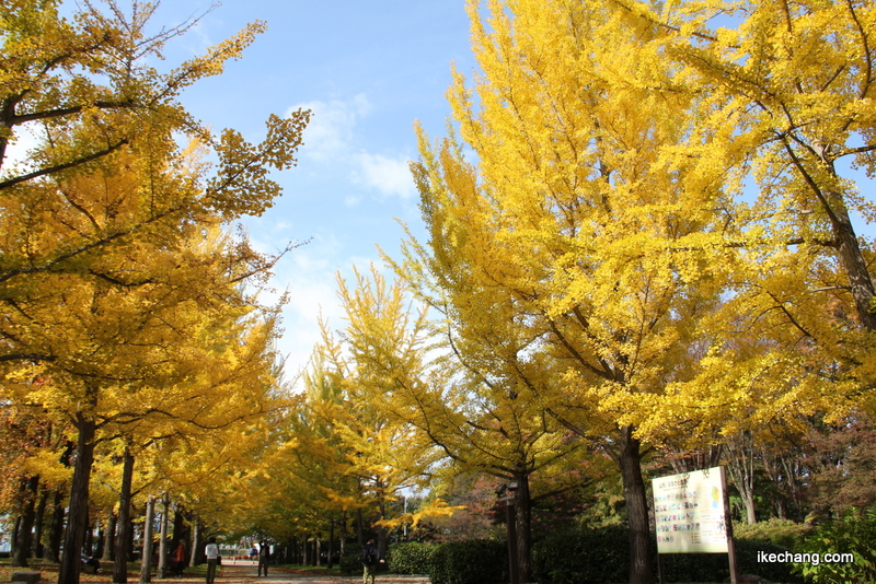 イチョウ並木も黄色くなってきました(山形県総合運動公園)