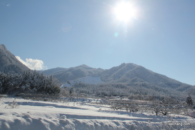 青い空、白い山々と雪道がとてもきれいで、久々のドライブ日和でした