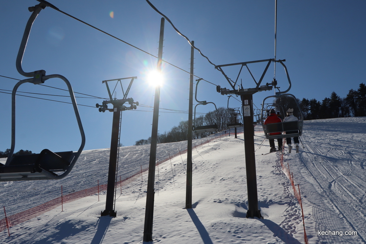 太陽がまぶしく輝く天童高原スキー場