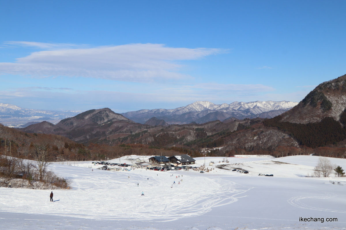 天童高原スキー場の向こうには葉山が見えます