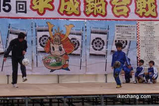 平成鍋合戦では毎年ミニイベントが開催されますが、今年は見事J1残留を果たしたモンテディオ山形のトークショーが開催されました。ステージ上には小林伸二(こばやし・しんじ)監督、DF石井秀典(いしい・ひでのり)選手、DF山田拓巳(やまだ・たくみ)選手が登場し、今シーズンの振り返っての感想などがやり取りされました。